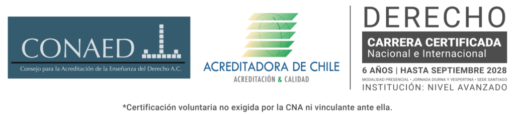 Carrera certificada a nivel nacional e internacional por 6 años (hasta 2028) por la Agencia Acreditadora de Chile y el Consejo para la Acreditación de la Enseñanza del Derecho de México.